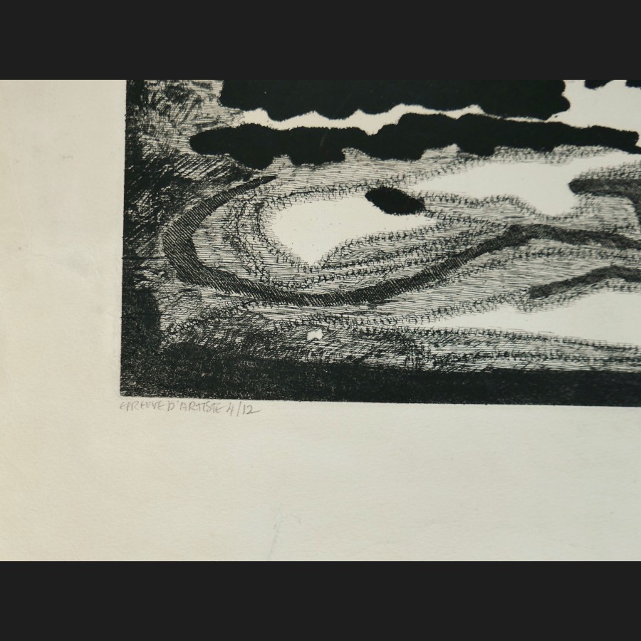 Signé au crayon en bas à droite RAMONDOT, titré en bas au centre au crayon Enfin, j'arrivai en vue de la mer et justifié en bas à gauche au crayon EPREUVE D'ARTISTE 4/12