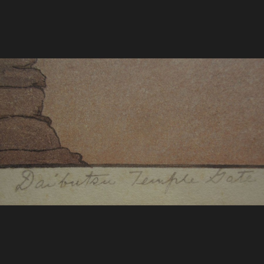 Titré au crayon en bas à gauche Daibutsu Temple Gate et signé en bas à droite au crayon Hiroshi Yoshida