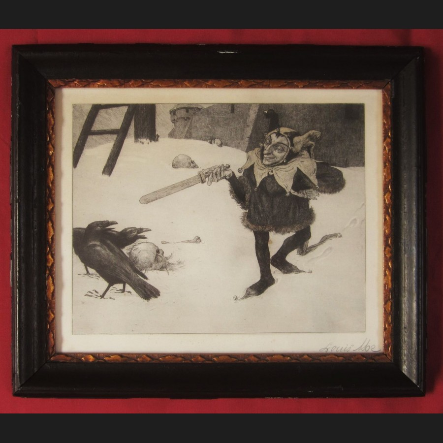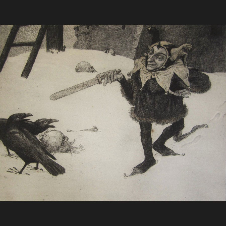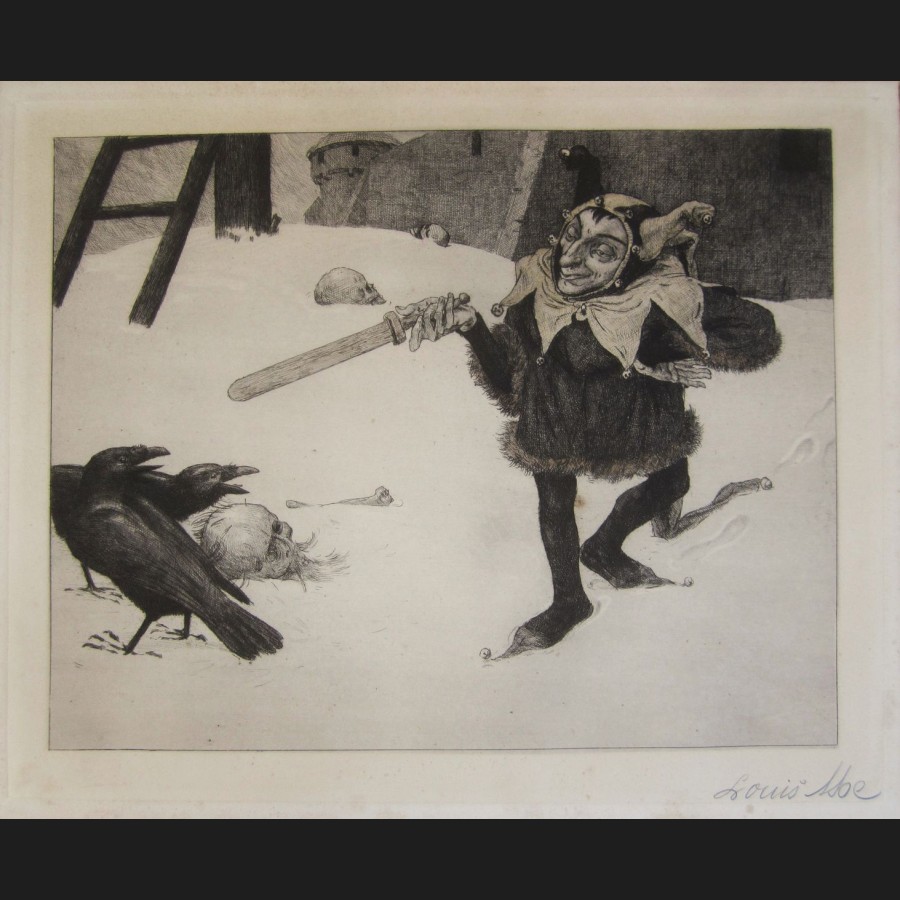 Louis MOE, Le bouffon et les corbeaux, eau-forte