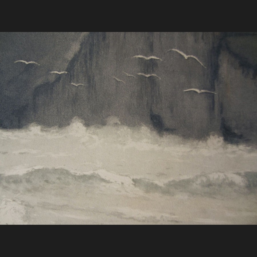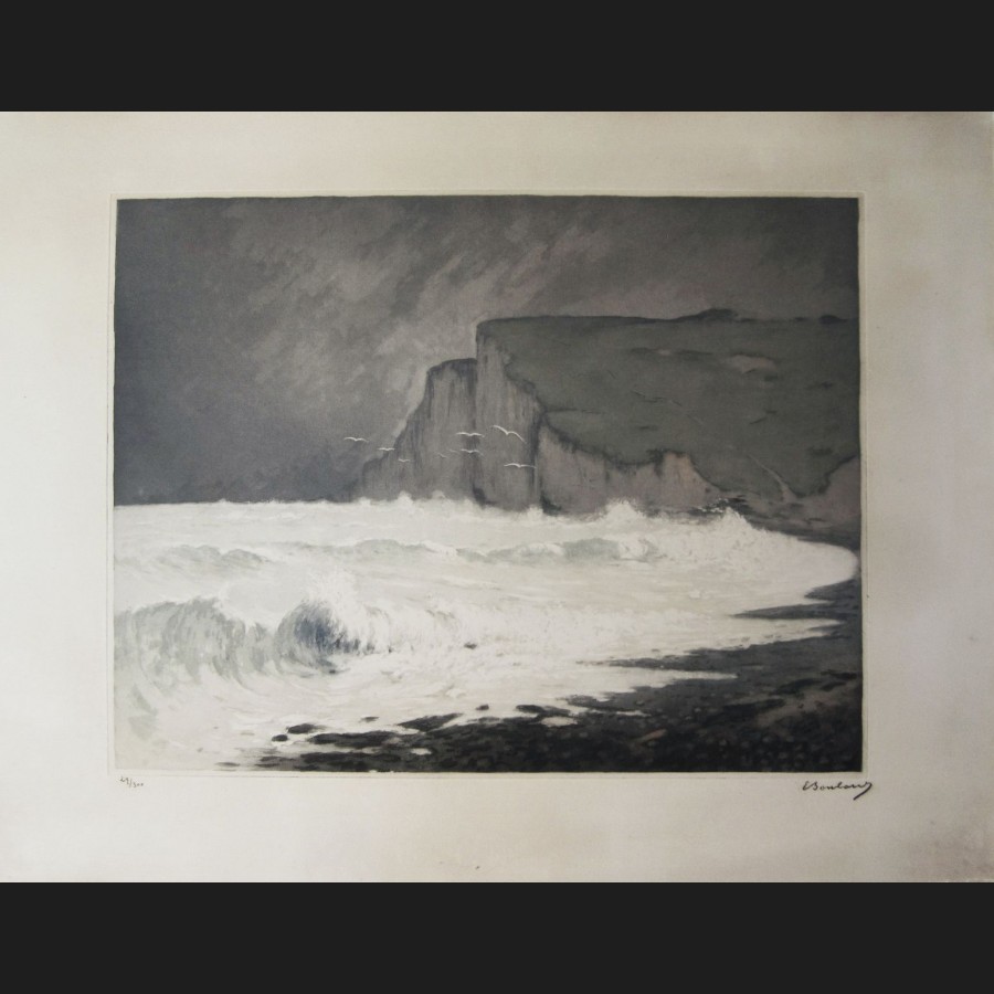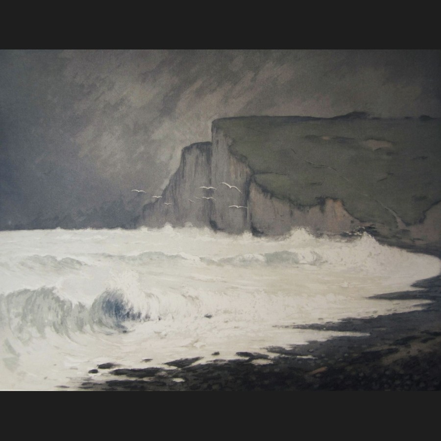 École FRANÇAISE du XIXème siècle, Vue de la côte normande aux Petites Dalles, aquatinte