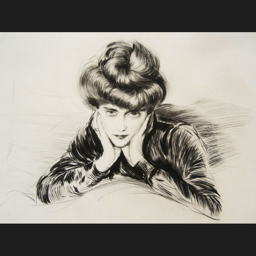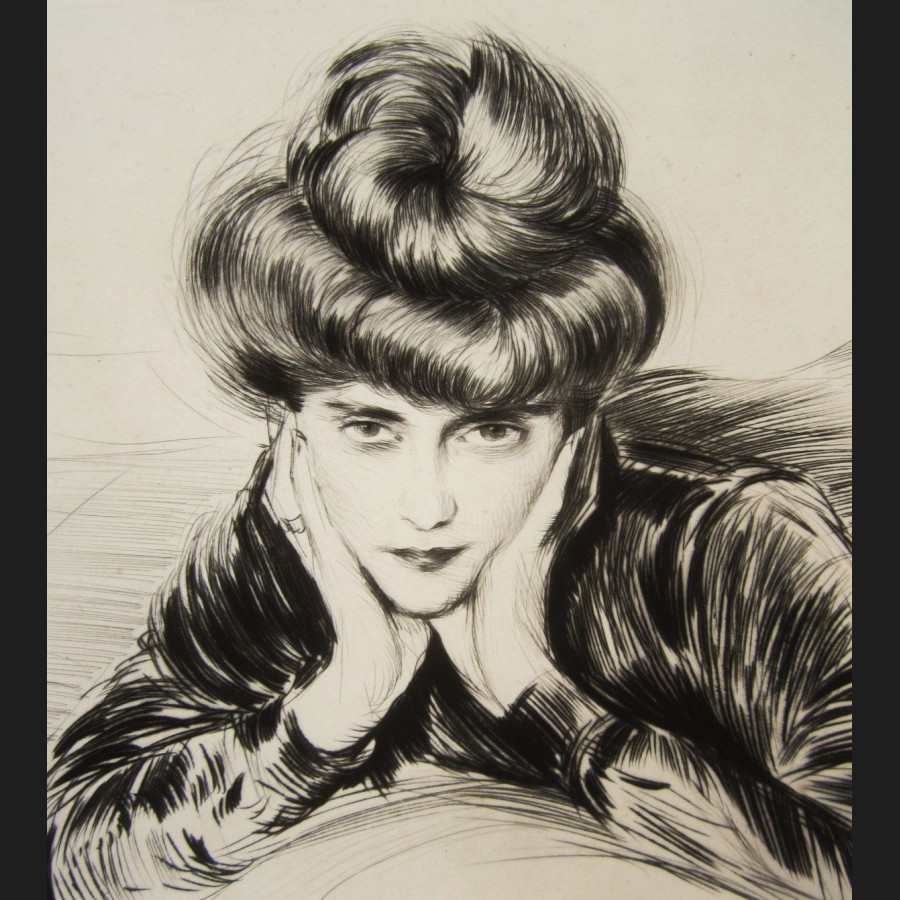 Paul-César HELLEU, Le visage encadré (portrait de Madame Helleu), gravure