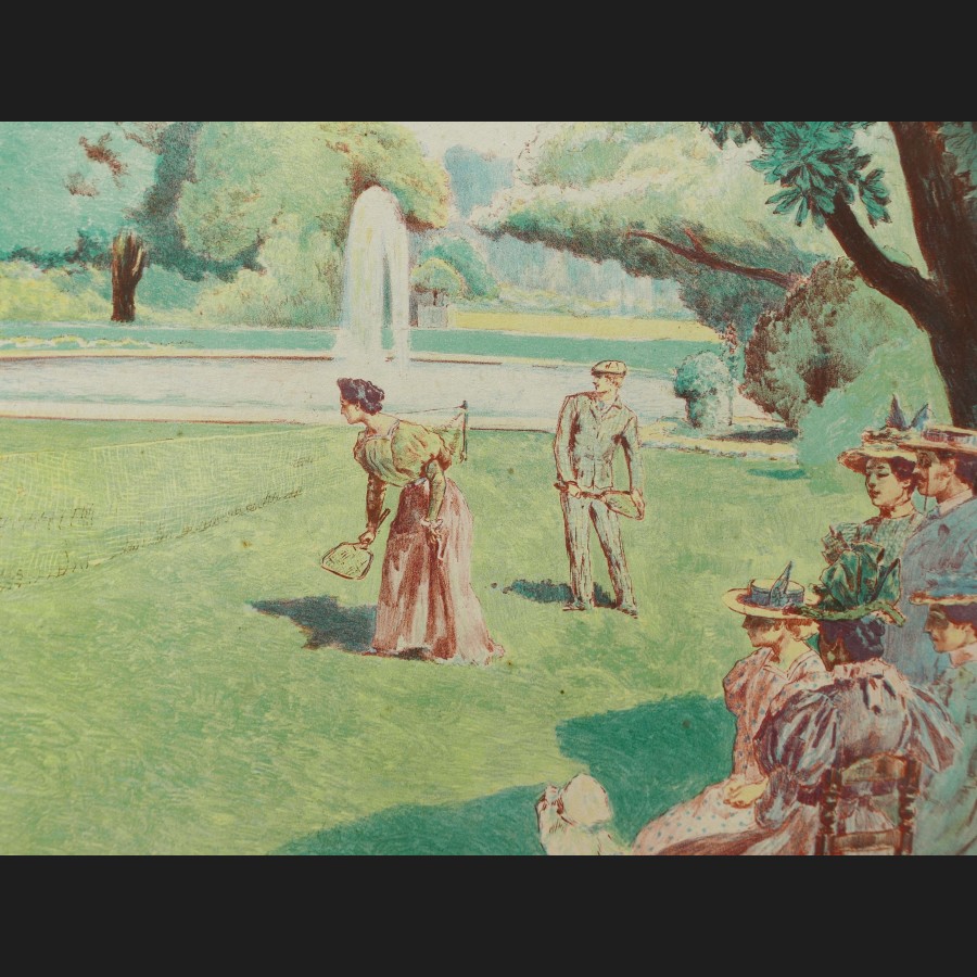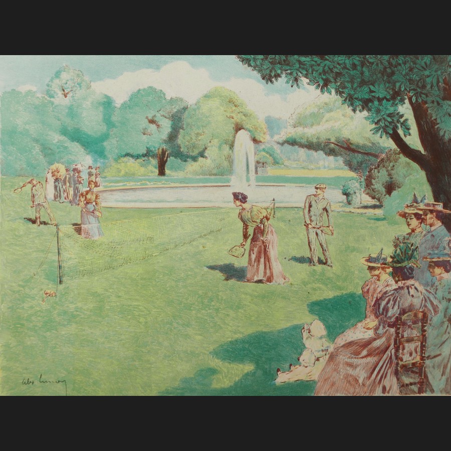 Alexandre LUNOIS, La partie de volant ou lawn tennis, estampe