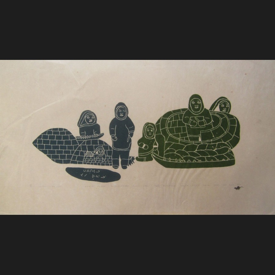 Davidialuk Alasua AMITTU (1910 – 1976)Inuits et igloosLinogravureSigné, numéroté 29/30, titré en inuit et daté 197452,5 x 88,5 cm