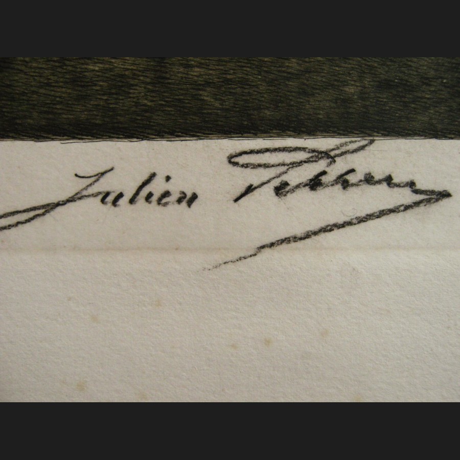 Signé dans la planche Julien PERREY avec deux pyramides et un palmier, contresigné au fusain Julien Perrey, toutes marges
