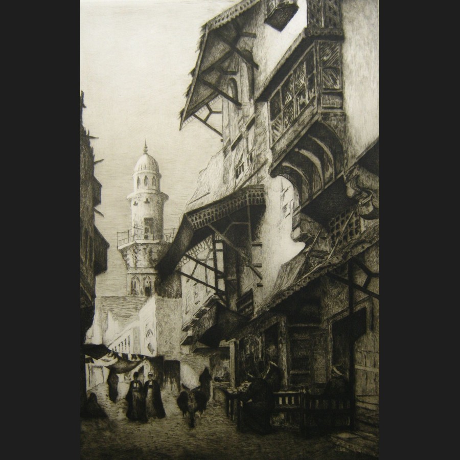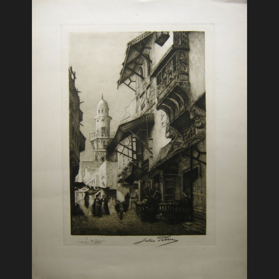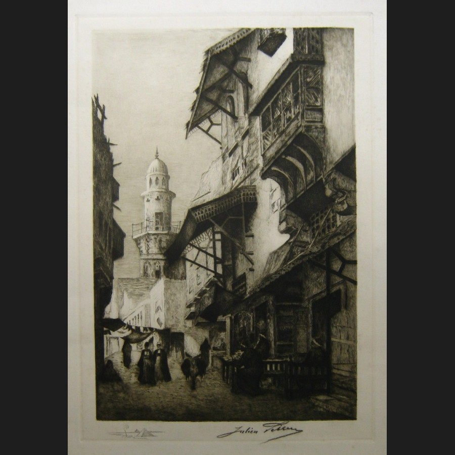 Julien Auguste PERREY, Rue animee en Egypte, eau-forte