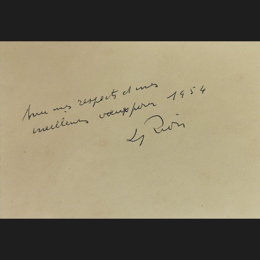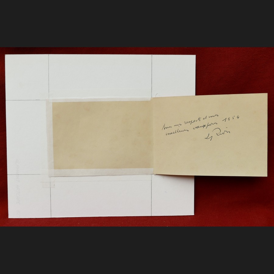 Signé en bas à droite Louis Riou, inscrit et contresigné à l'encre dans la carte Avec mes respects et mes meilleurs voeux pour 1954 / L Riou