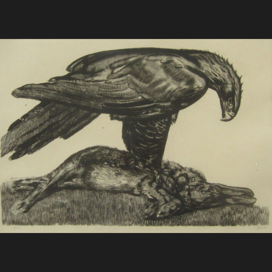 Paul JOUVE, Aigle enserrant un lièvre, eau-forte