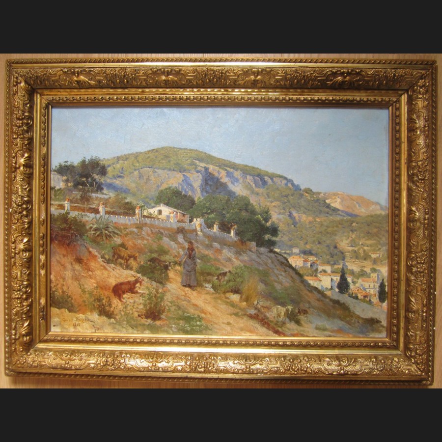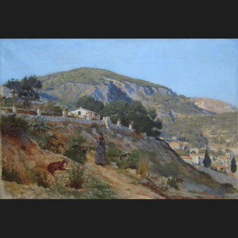 Georges Paul Joseph DARASSE, Paysanne et ses chèvres à Villefranche-sur-Mer, tableau