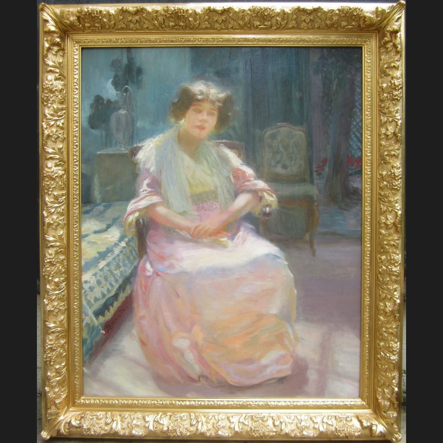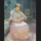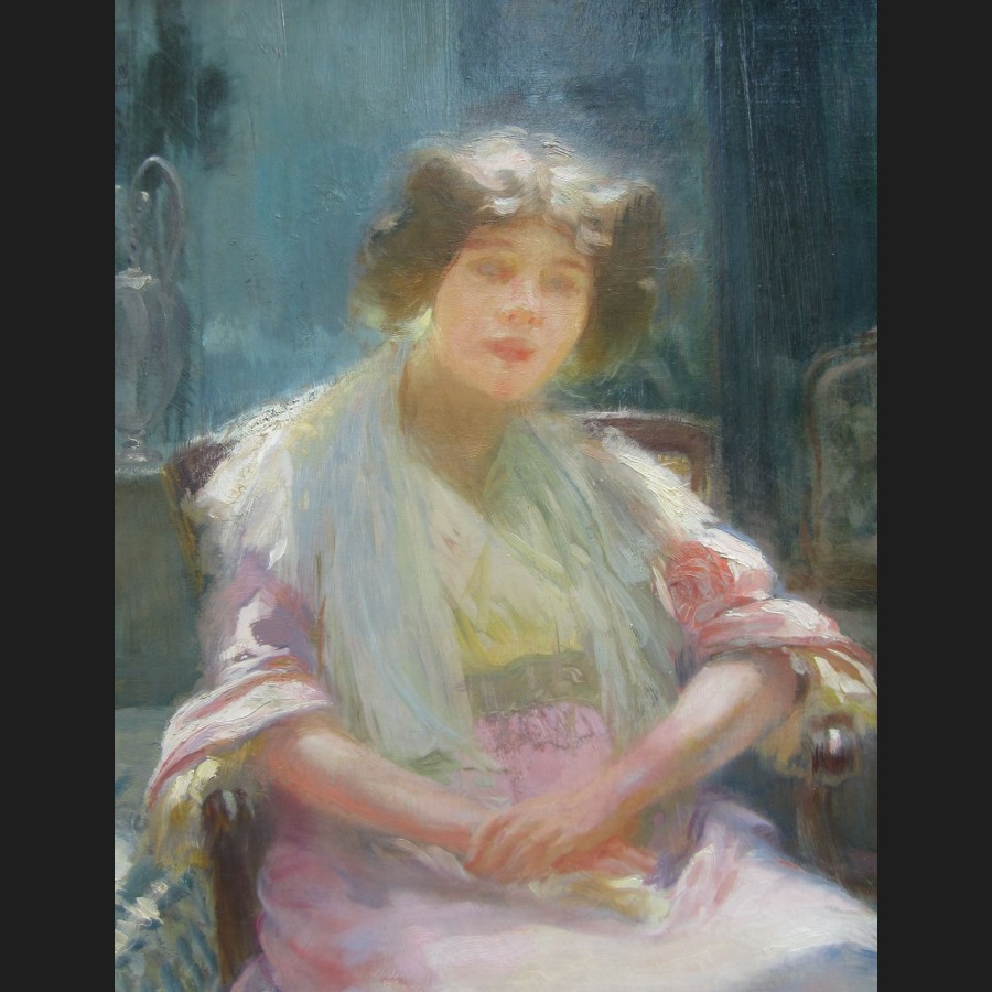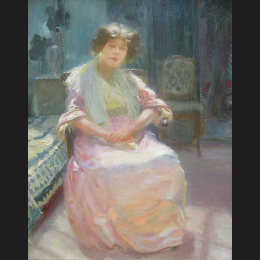 Albert BESNARD, Portrait de jeune femme assise dans un intérieur de nuit, tableau