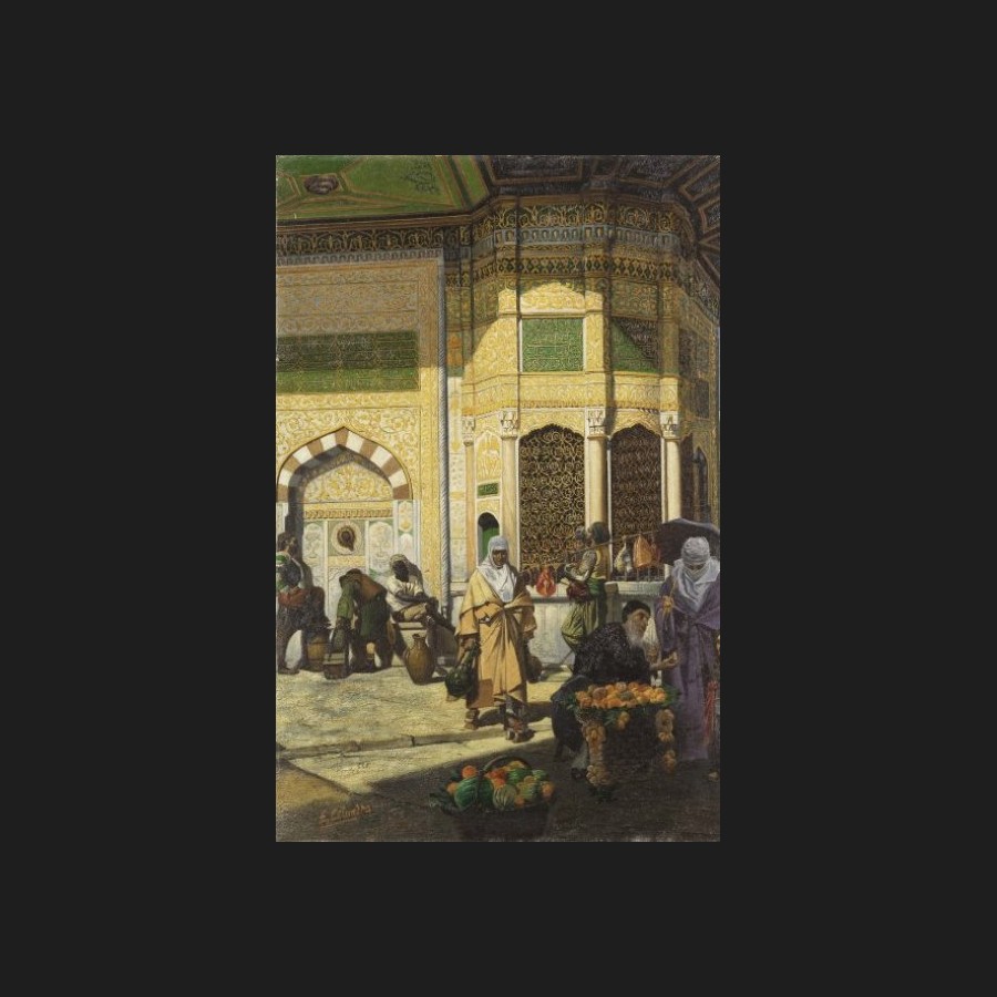 Edoardo CALANDRA, Marchands de fruits devant la fontaine du Sultan Ahmet III a Constantinople, tableau