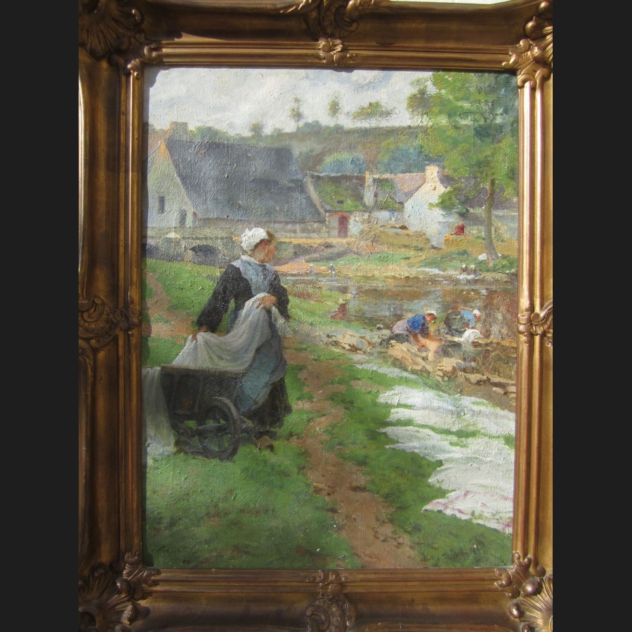 Ecole ETRANGERE circa 1920, Lavandieres en Bretagne, tableau