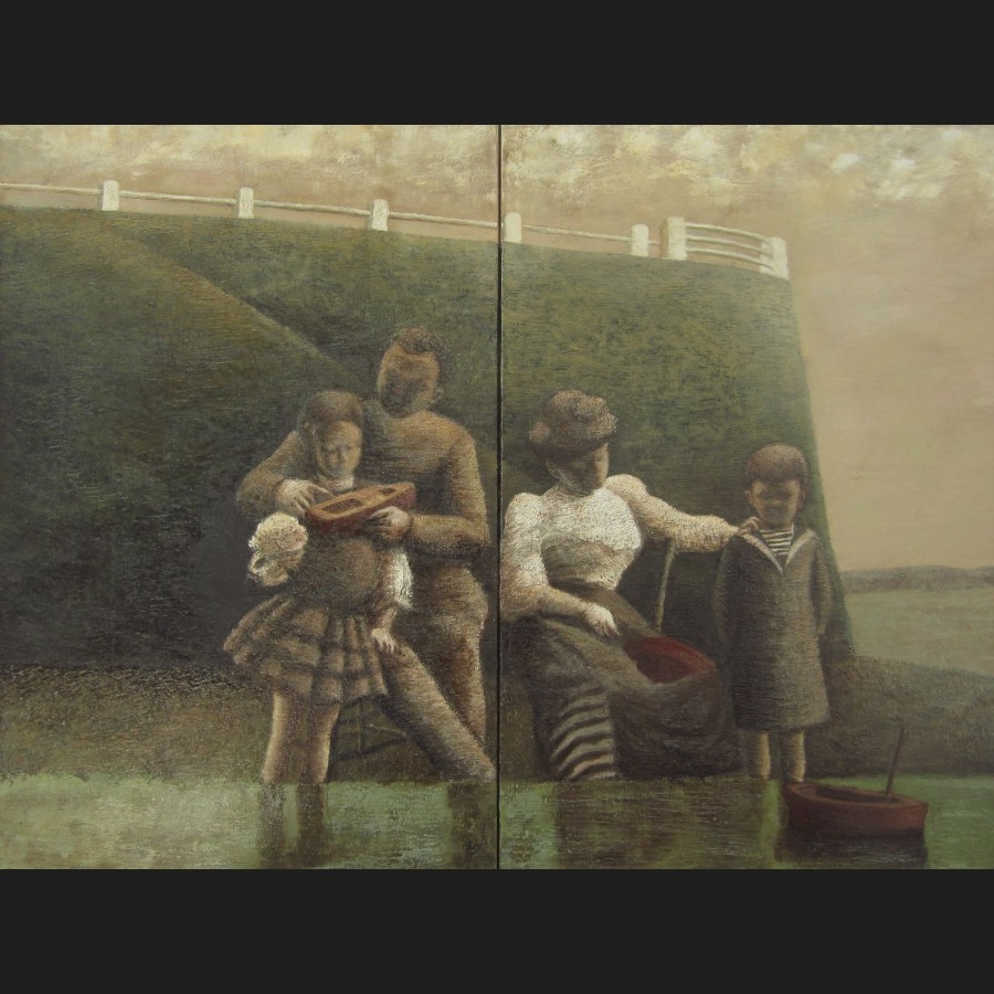 Marie-Jacques MASSOL, Famille devant le môle de Locquirec, huile sur toile