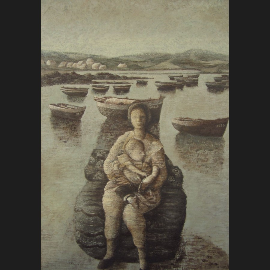 Marie-Jacques MASSOL, Maternité dans la baie de Locquirec, huile sur toile