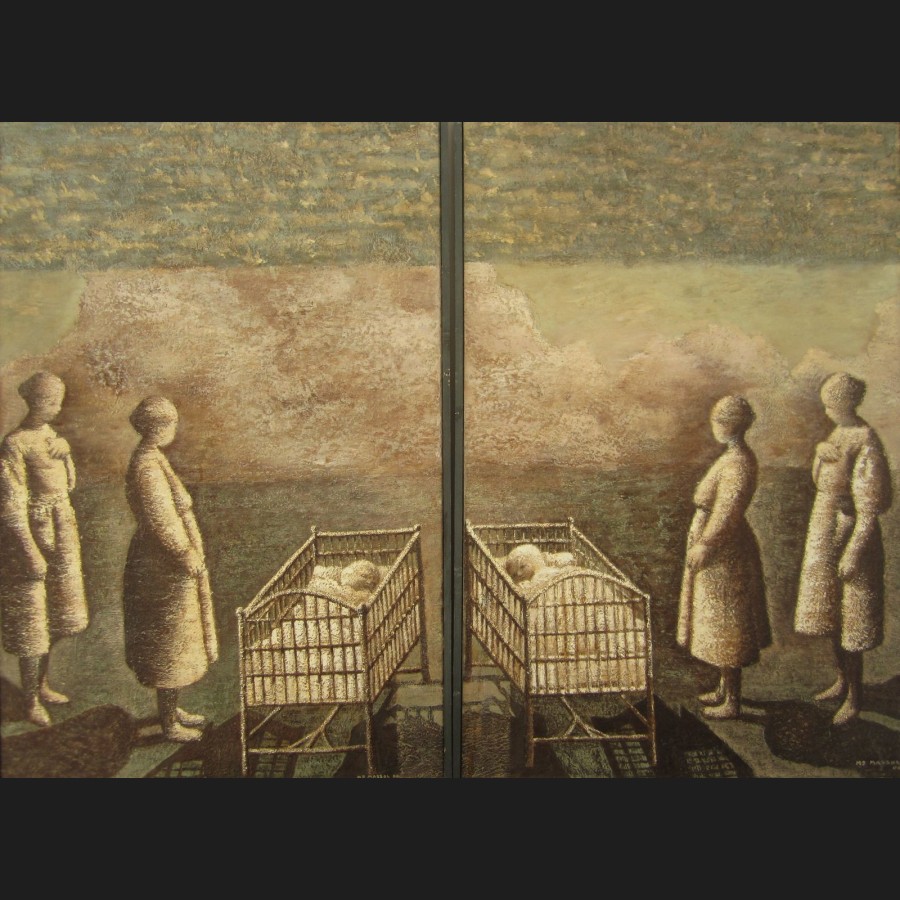 Marie-Jacques MASSOL, Femmes et berceaux, huile sur toile