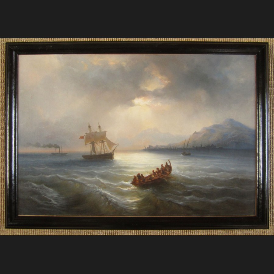 Attribué à Théodore GUDIN, Marins en barque et bateaux au couchant en Crimée, tableau