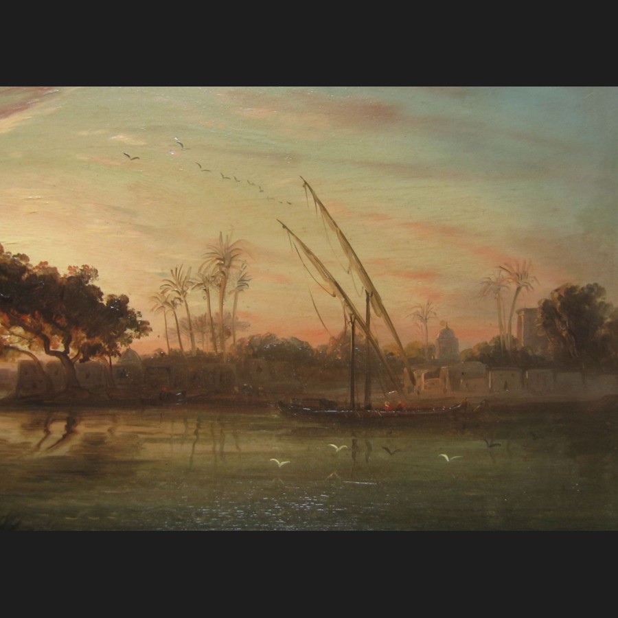 Léon BRARD (1830 - 1902)Vue d'un rivage en Orient Huile sur panneau d'acajouSigné en bas à droite L. Brard21,5 x 42 cm