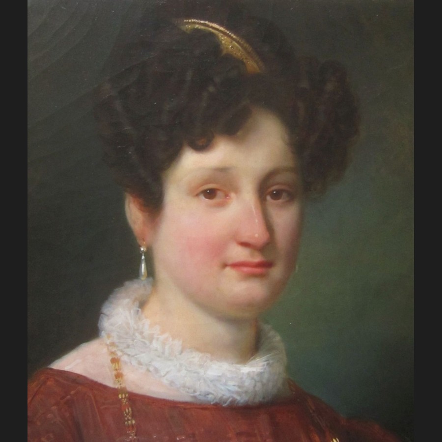 École FRANÇAISE circa 1820, Portrait de Clémence Dalivoy aux col de dentelle et collier, tableau