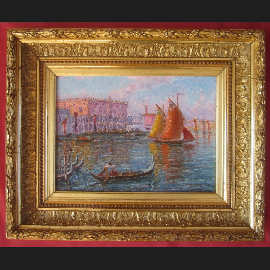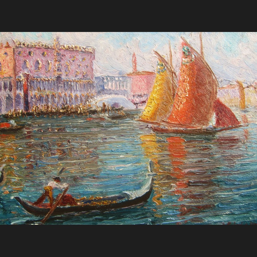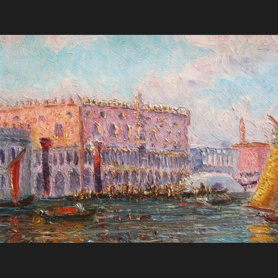 Édouard DAMBOURGEZ, Le Bacino di San Marco animé à Venise, tableau