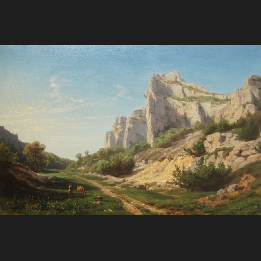 Pierre Alexandre JEANNIOT, Paysage animé dans le Midi, tableau