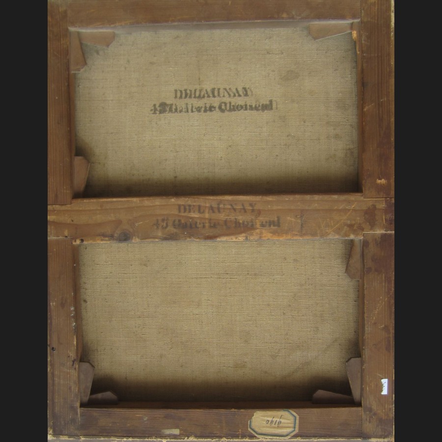 Marque au revers du marchand de toiles DELAUNAY 45 Galerie Choiseul, étiquette numérotée 9190