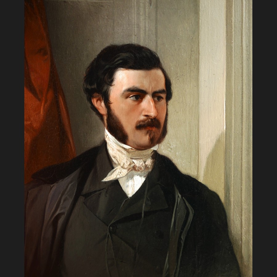 Attribué à Eugène DEVAUX, Portraits d'hommes, paire de tableaux