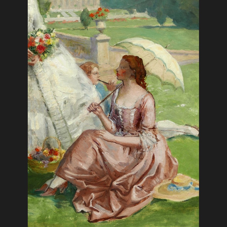 École FRANÇAISE circa 1900-1920, dans le goût de Henri-Victor LESUR, Conversation dans un parc, tableau