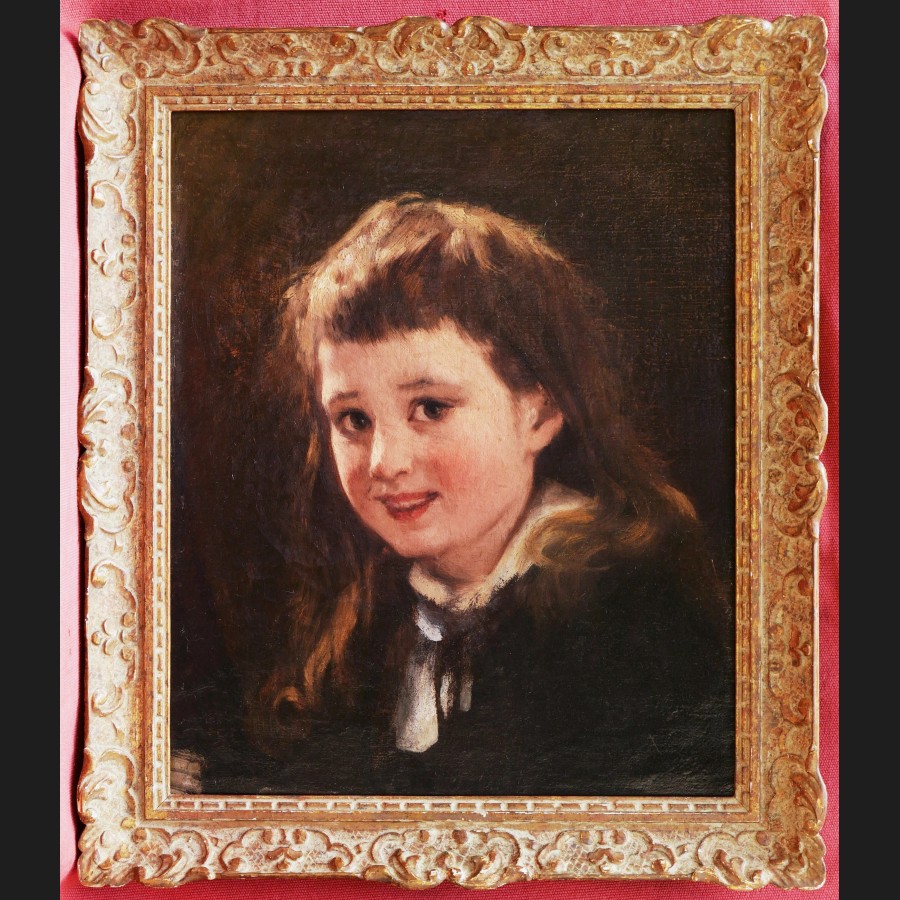 Alexandre ANTIGNA (Orléans, 1817 – Paris, 1878)Portrait du fils de l'artisteHuile sur toile41 x 33 cmCadre en bois sculpté et patiné