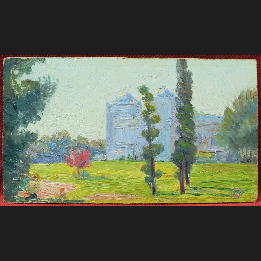 Monogrammé HP en bas à droite, étiquette titrée au dos Parc-Montsouris