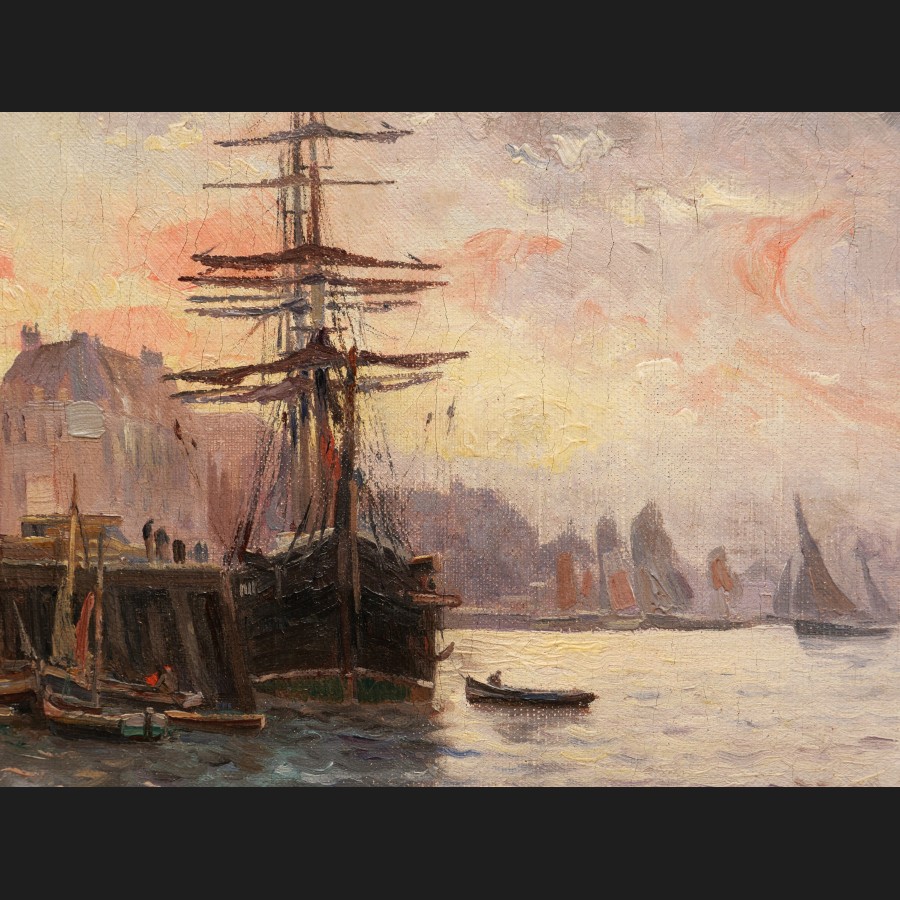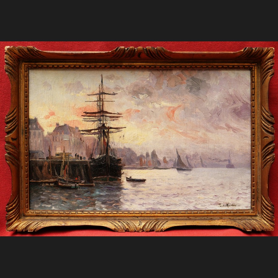 Paul MORCHAIN, Vue du port de Douarnenez au crépuscule, tableau