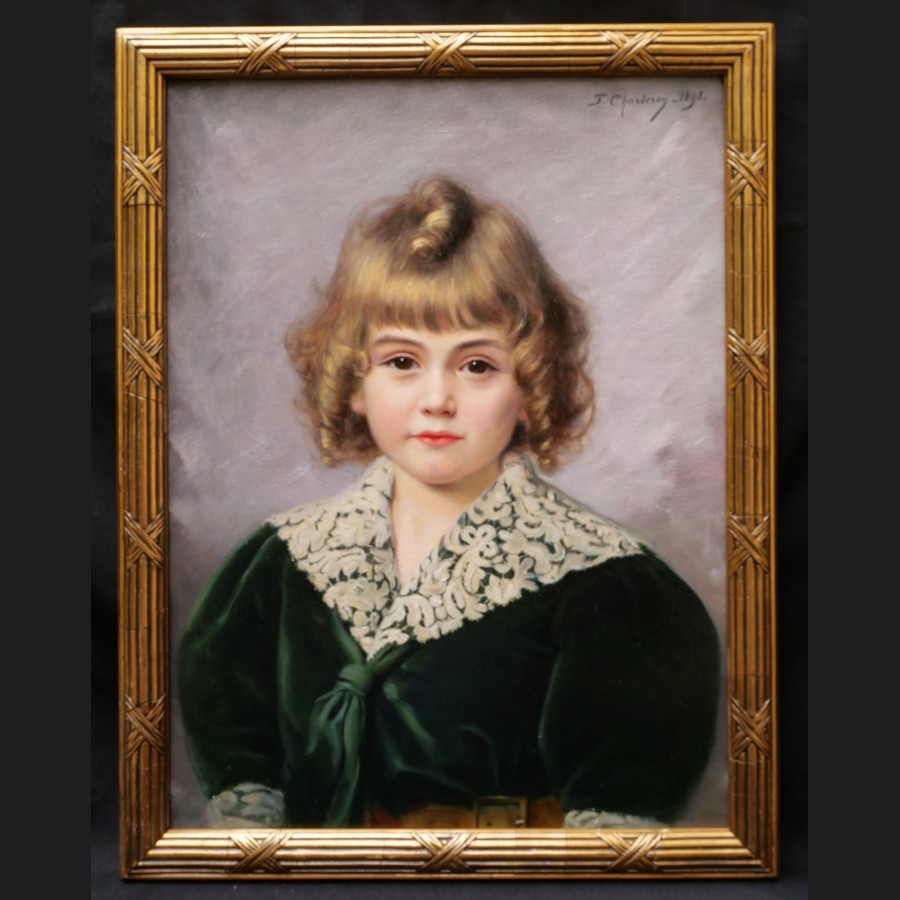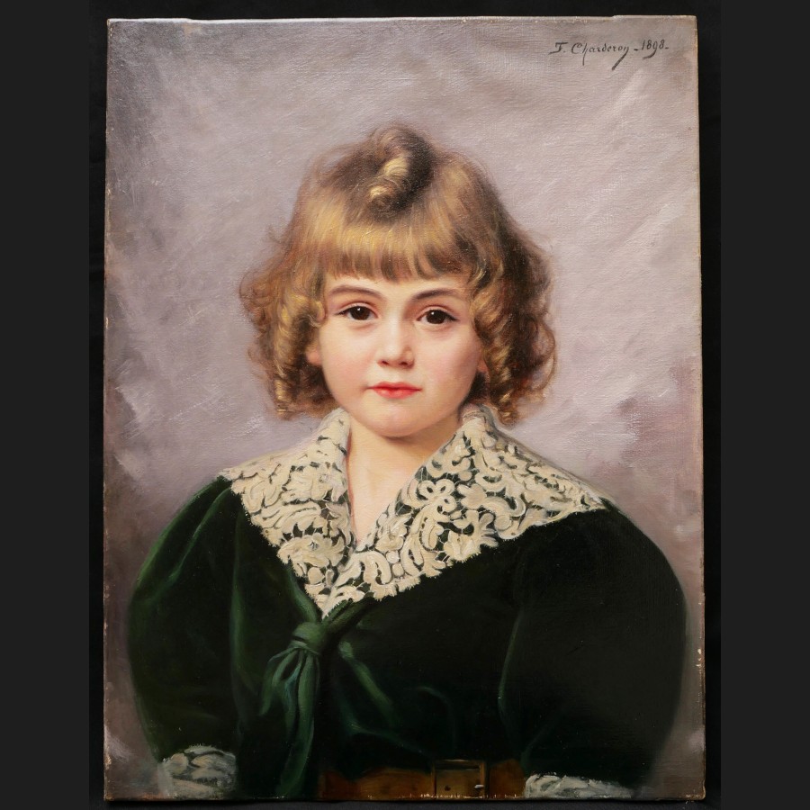 Françoise Pauline, dite Francine CHARDERON, Portrait d'enfant en robe verte, tableau