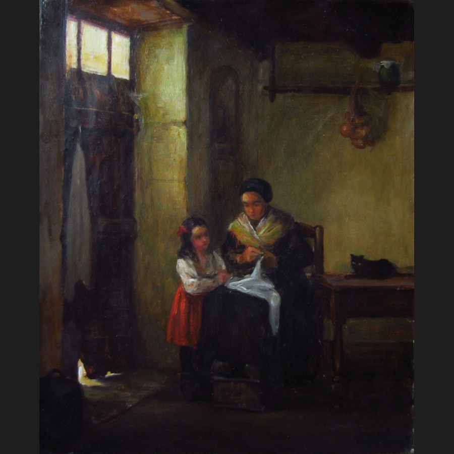 Jean Antoine Armand VERGEAUD, Mere cousant avec sa fille, tableau