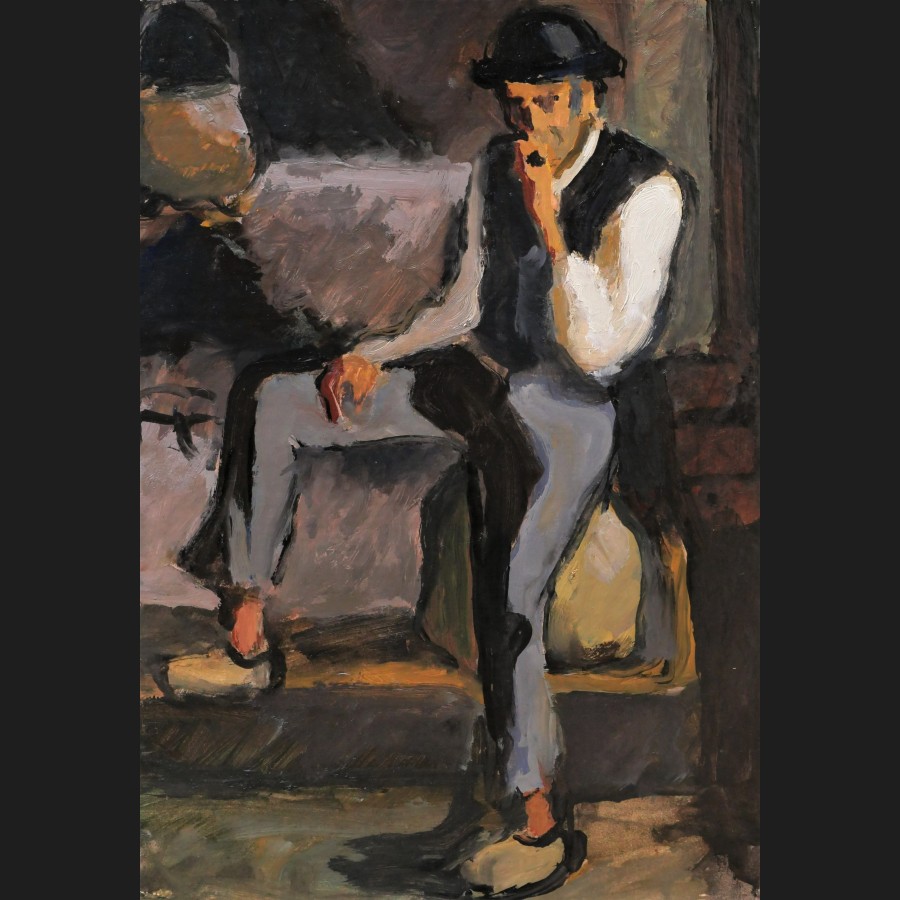 Attribué à Pierre de BELAY, Breton assis fumant sa pipe, tableau