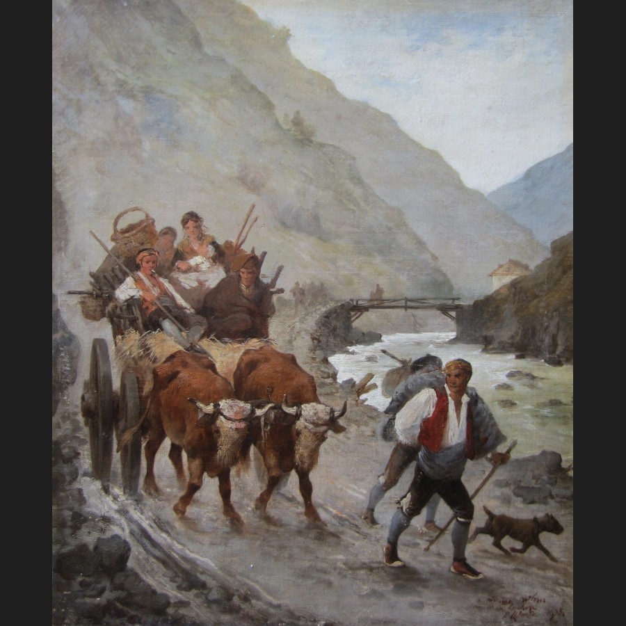 Emile Henri LAPORTE, Famille de Catalans en voyage dans les Pyrenees, tableau
