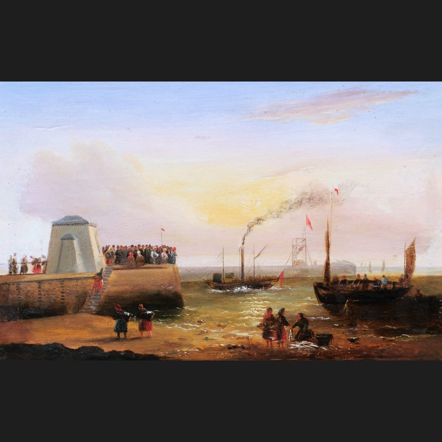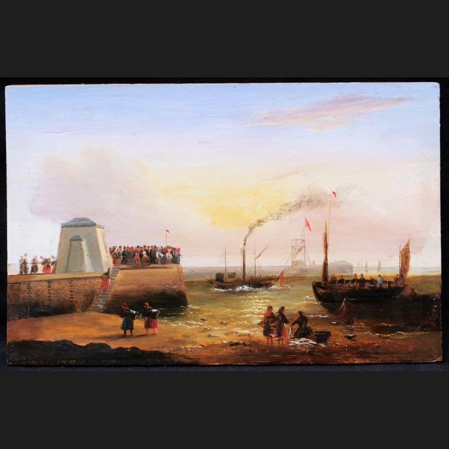 École FRANÇAISE du XIXème siècle, Vue animée sur un port, tableau