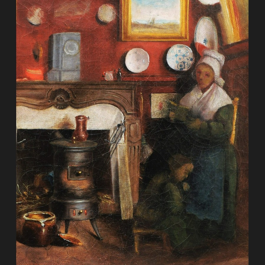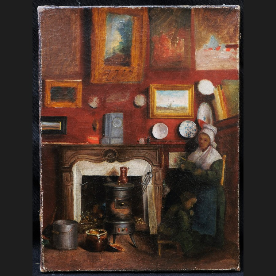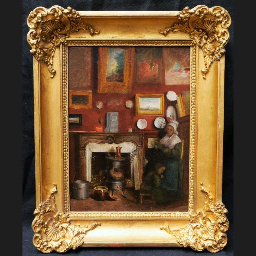École FRANÇAISE du XIXème siècle, Femme et enfant dans un intérieur décoré de tableaux