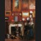 Femme et enfant dans un intérieur décoré de tableaux