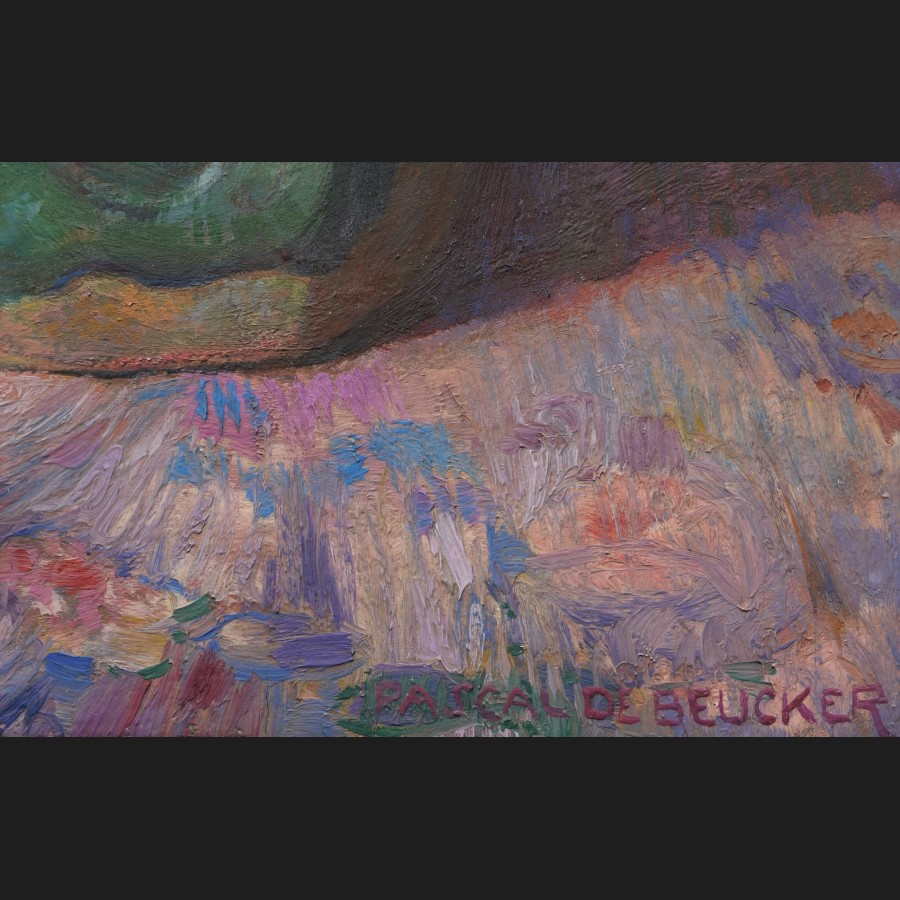 Signé en bas à droite PASCAL DE BEUCKER, ancienne étiquette au dos numérotée 7579