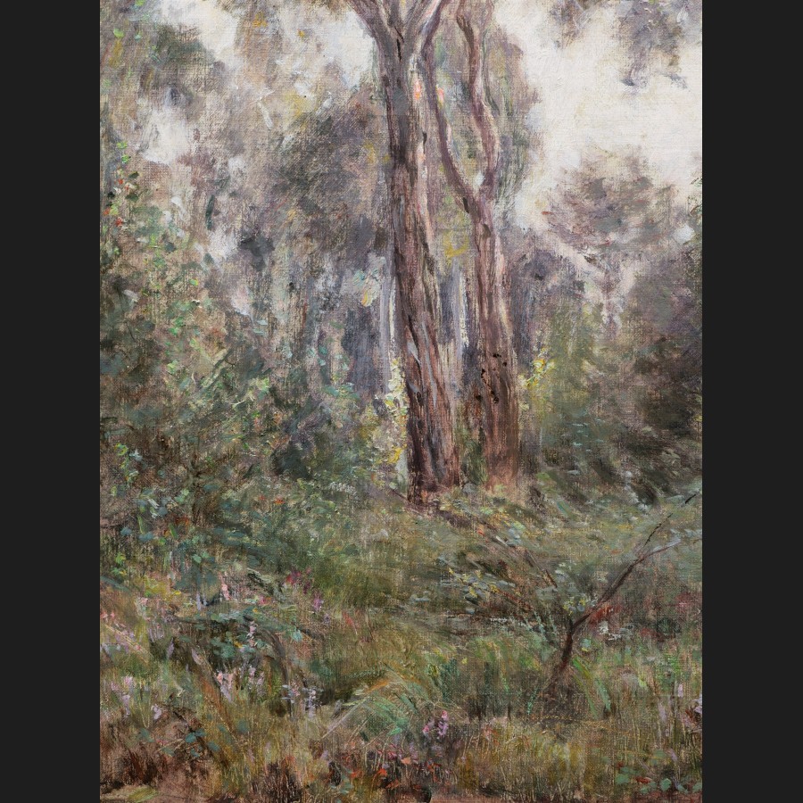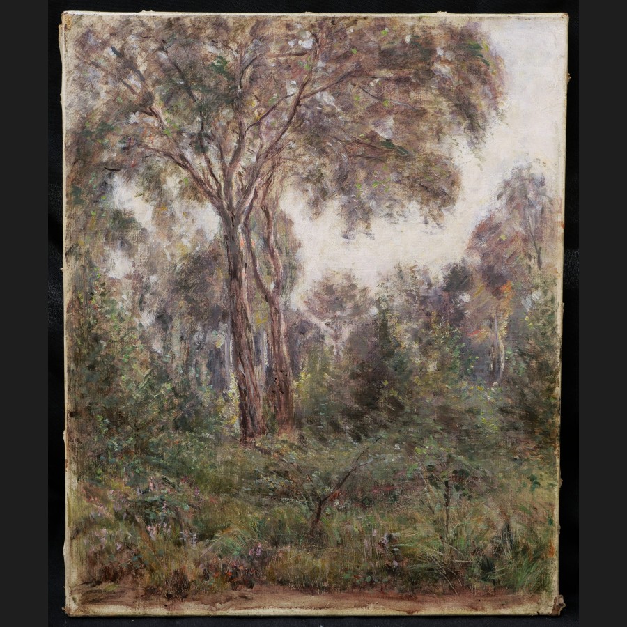 École FRANÇAISE impressionniste, circa 1880Paysage à la clairièreHuile sur toile46 x 38 cmCadre en chêne ciré