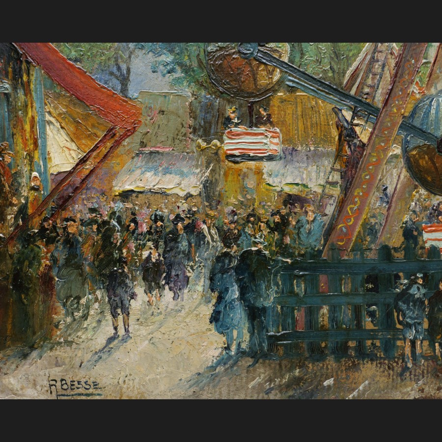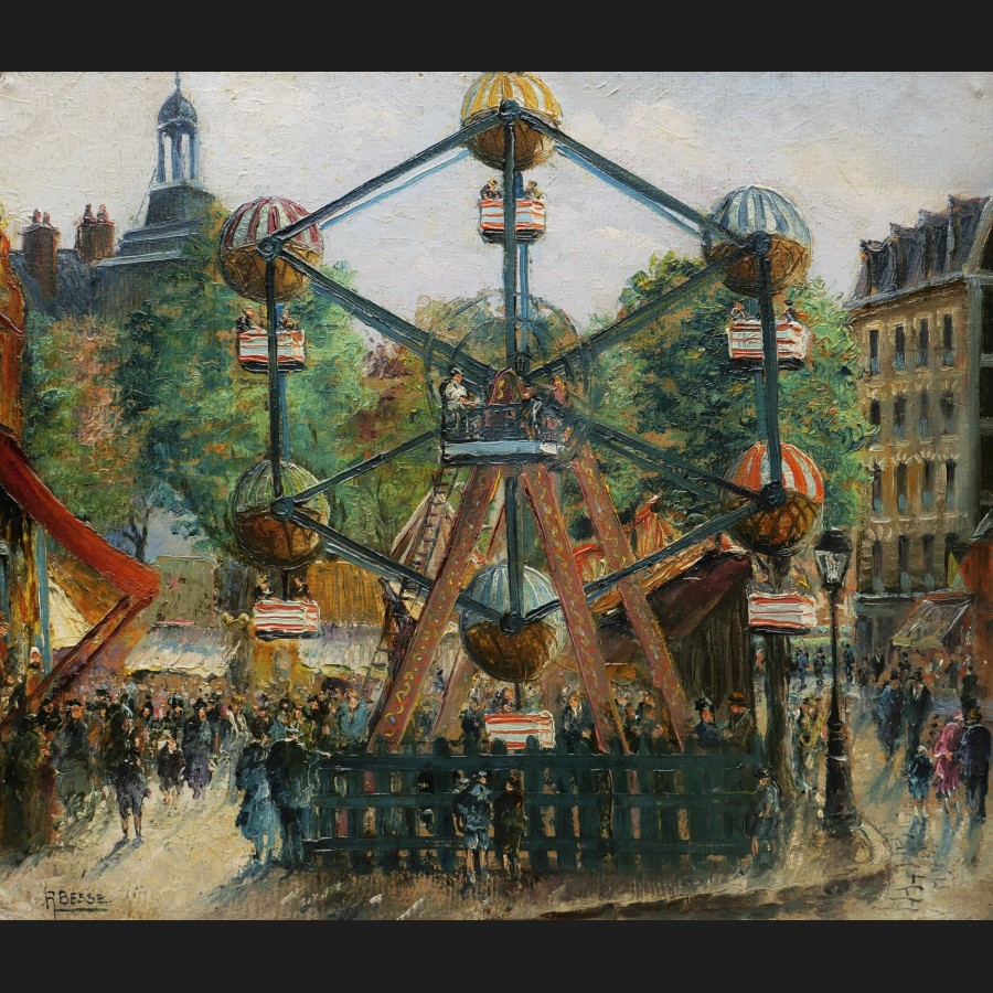 Signé R. BESSE en bas à gauche, situé au dos Le Manège à Ballons / fête de St Ouens Seine