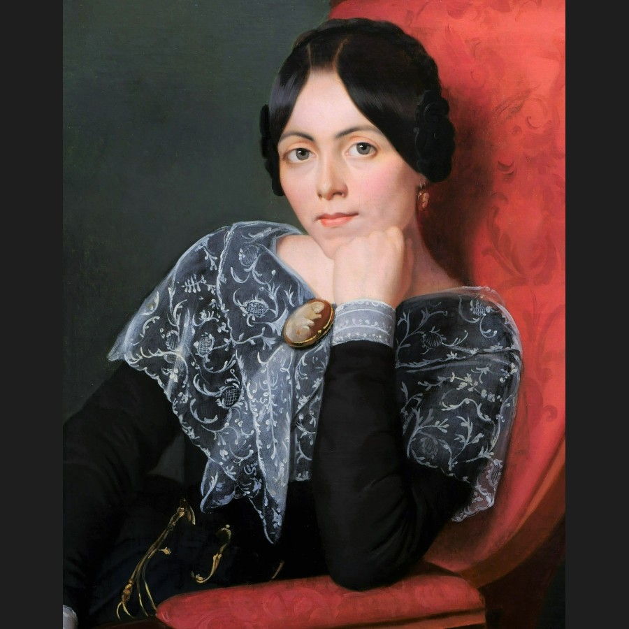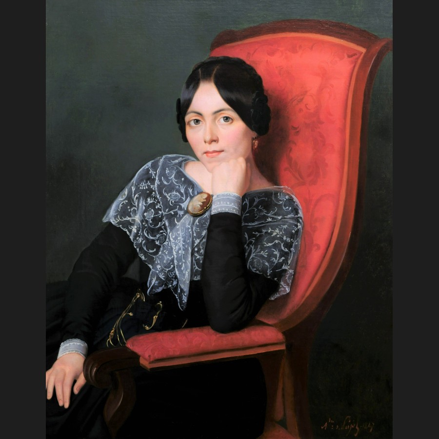 Auguste-Alexandre ABEL de PUJOL, Portrait de femme au camée assise dans un fauteuil, tableau