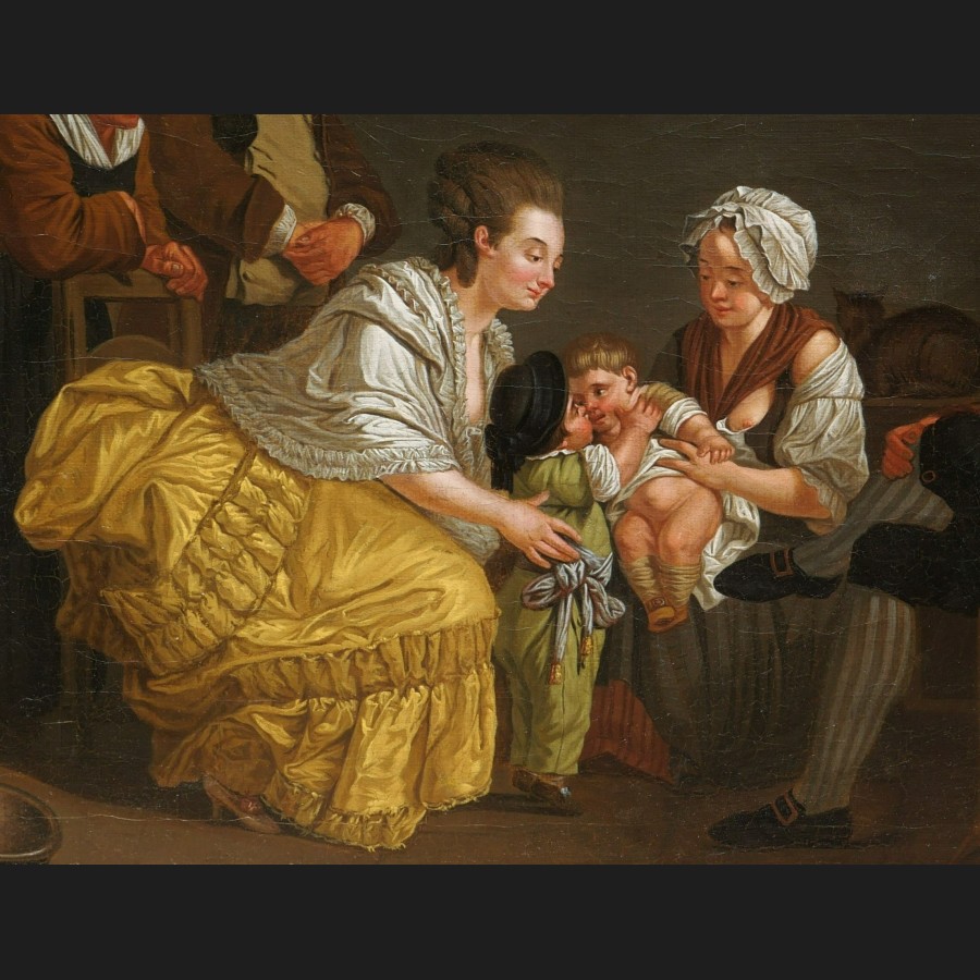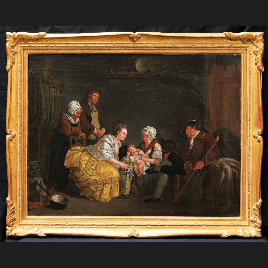 Numéroté, monogrammé et titré au revers sur le châssis N°2738 LC / la visite à la nourice par Greuze (sic)