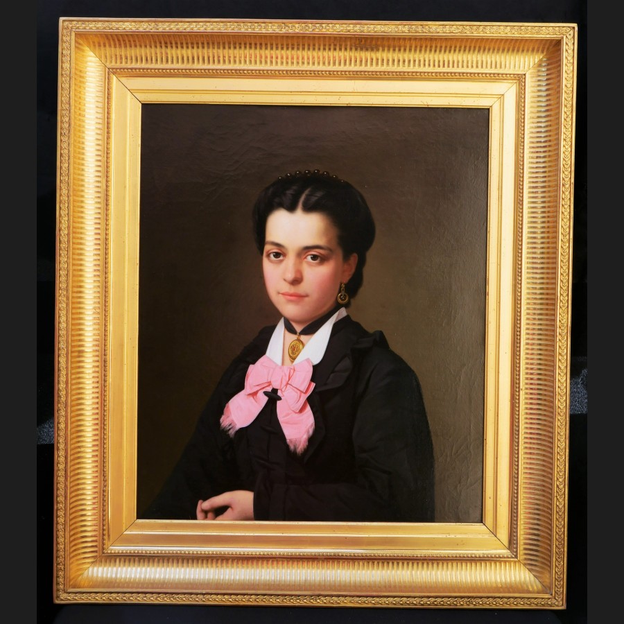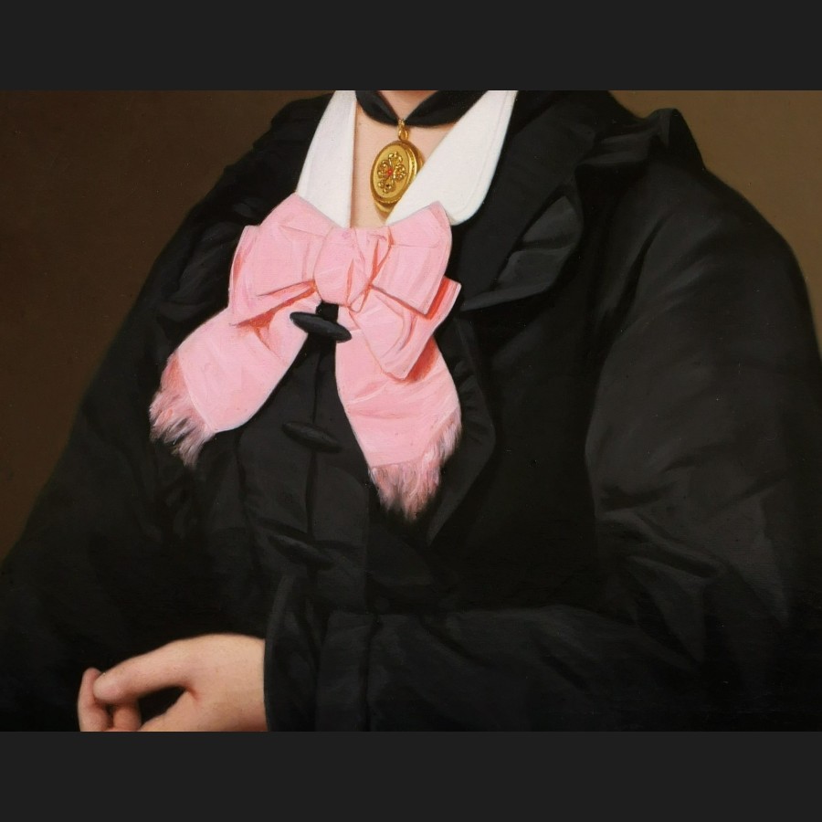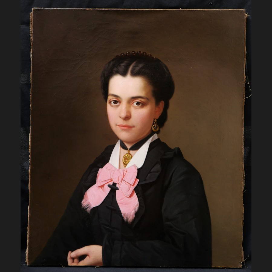 Narcisse SALIÈRES, Portrait de femme au noeud rose, tableau