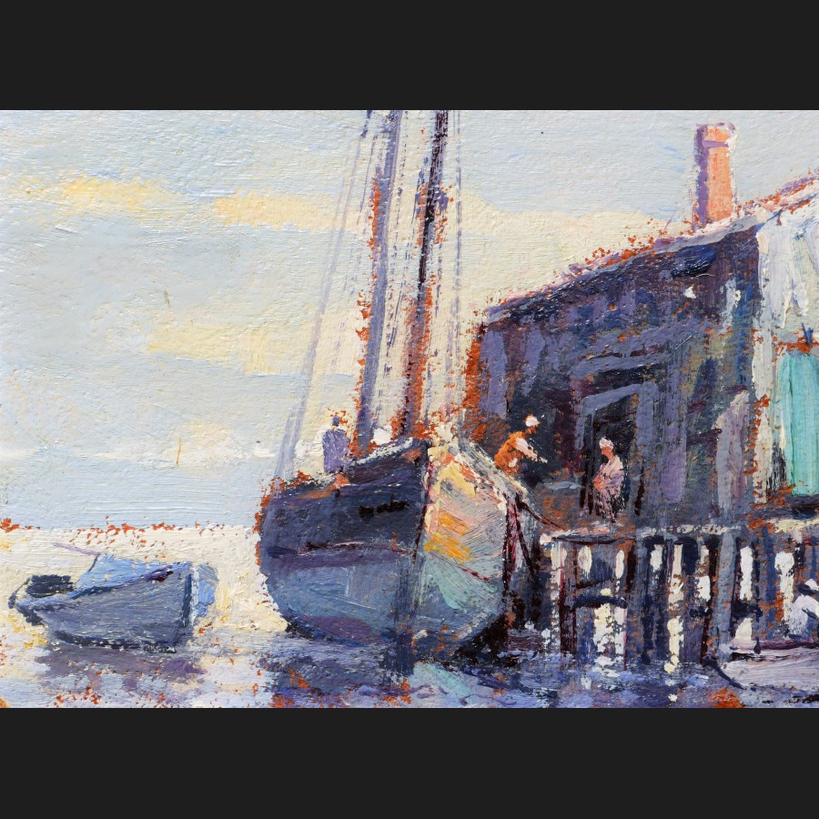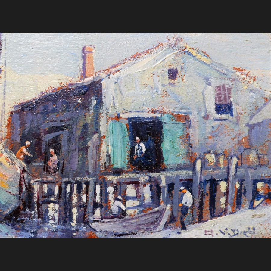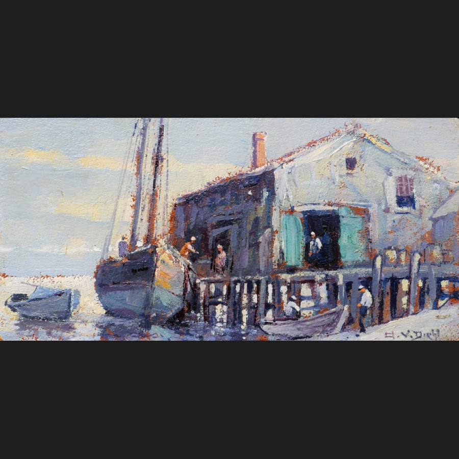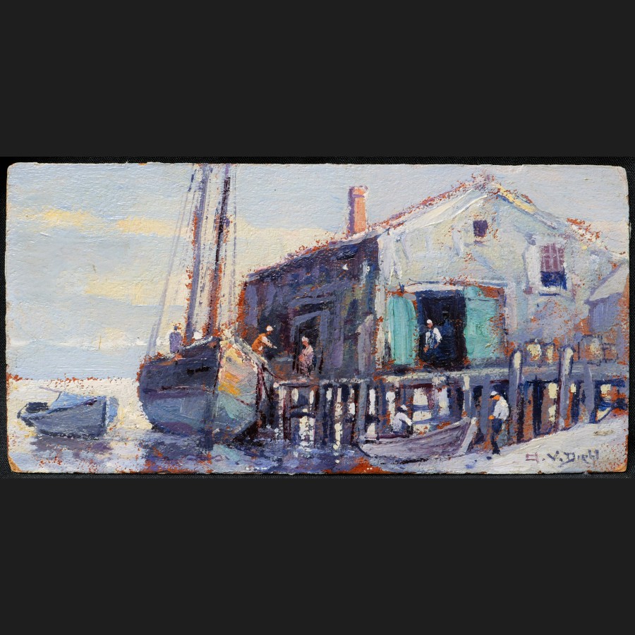 Arthur VIDAL DIEHL, Quai animé à Cape Cod, tableau