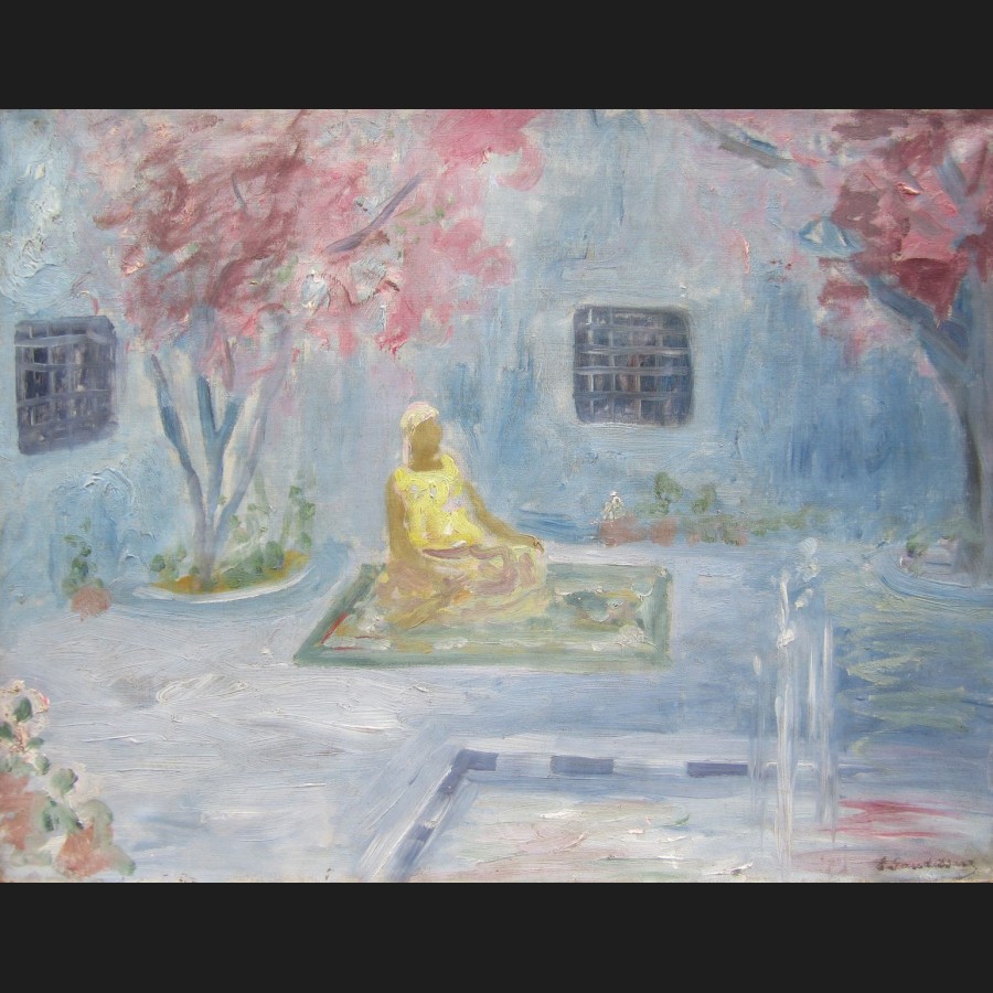 Emile GAUDISSARD, Femme dans une cour en Algerie, tableau