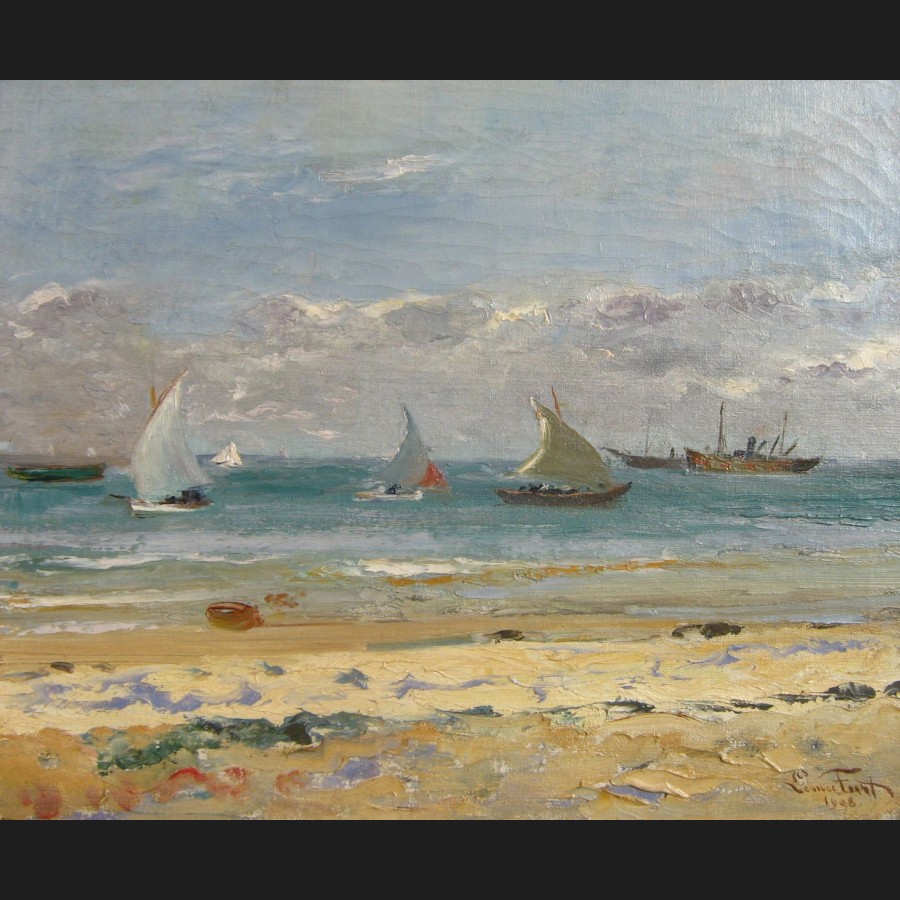 Pierre Leonce FURT, Bateaux devant la plage au Havre, tableau